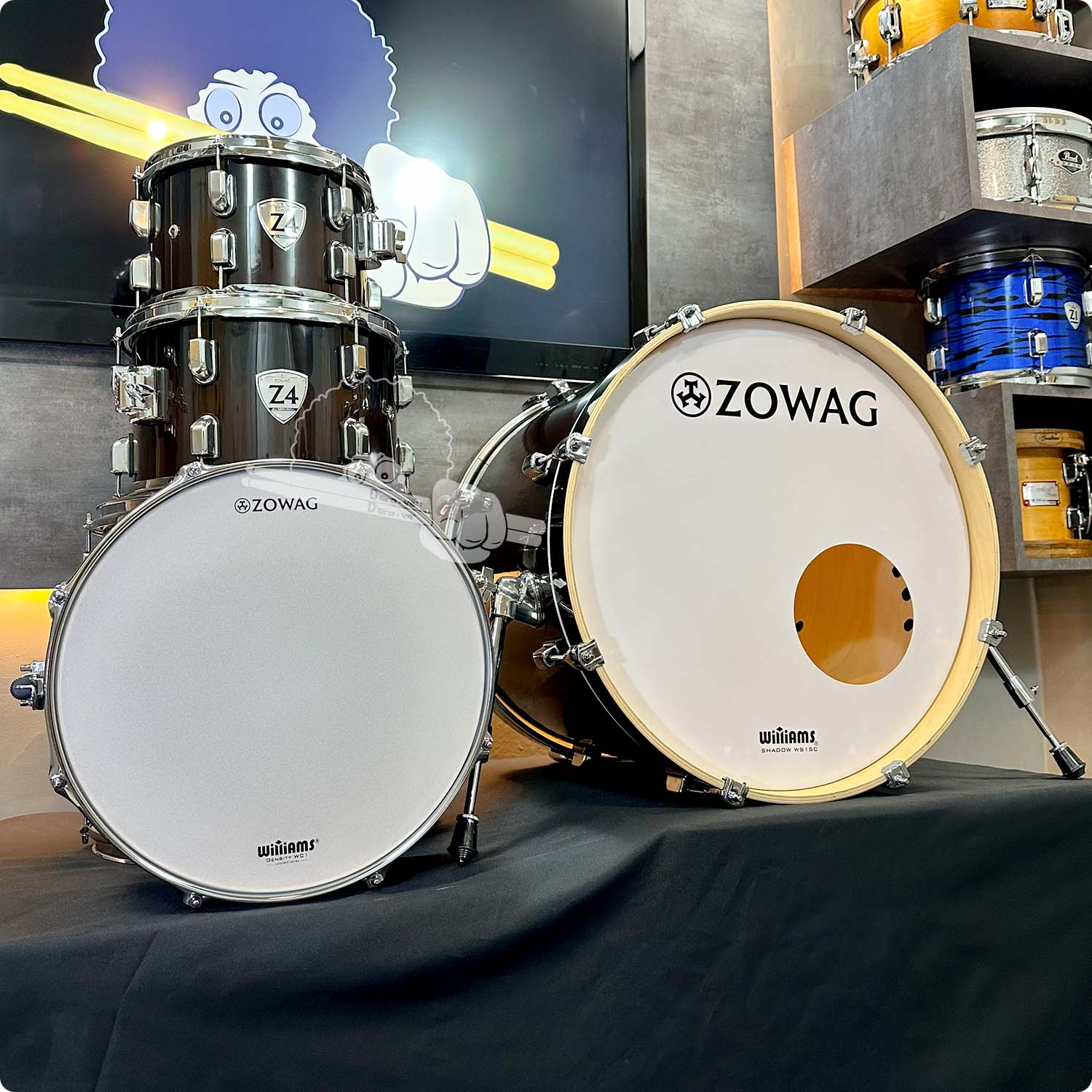 Bateria Zowag Z4 Series Brown Black Fade 10″/12″/16″/22″ + 14″Cx (Shell Pack) Em BIRCH com Graves PROFUNDOS