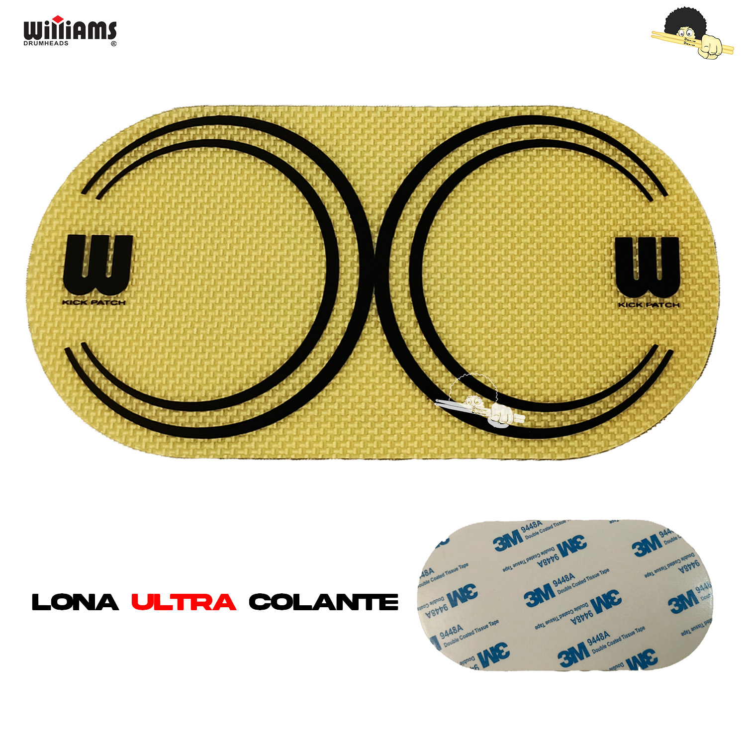 O Patch Williams Kevlar WDKV-YL é projetado para pedais duplos, oferecendo proteção reforçada e resposta uniforme em ambos os batedores.